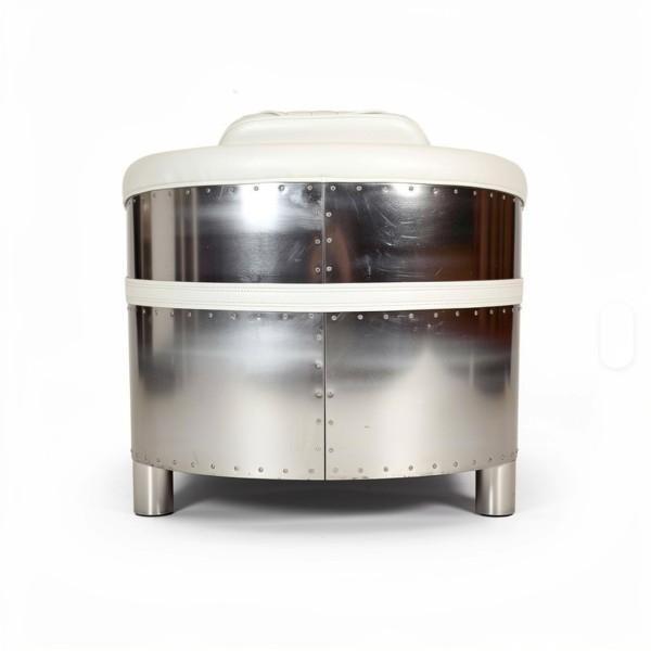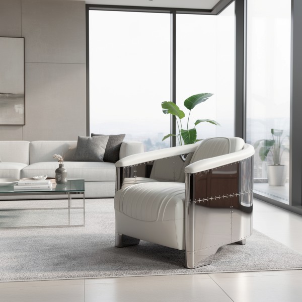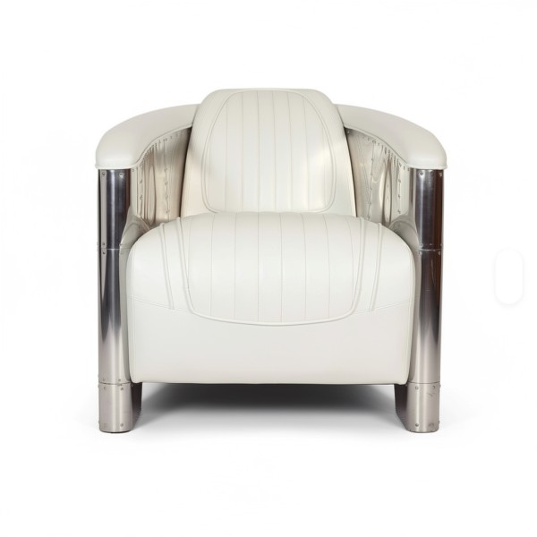 Aviateur Fauteuil Cuir Blanc et Aluminium Riveté